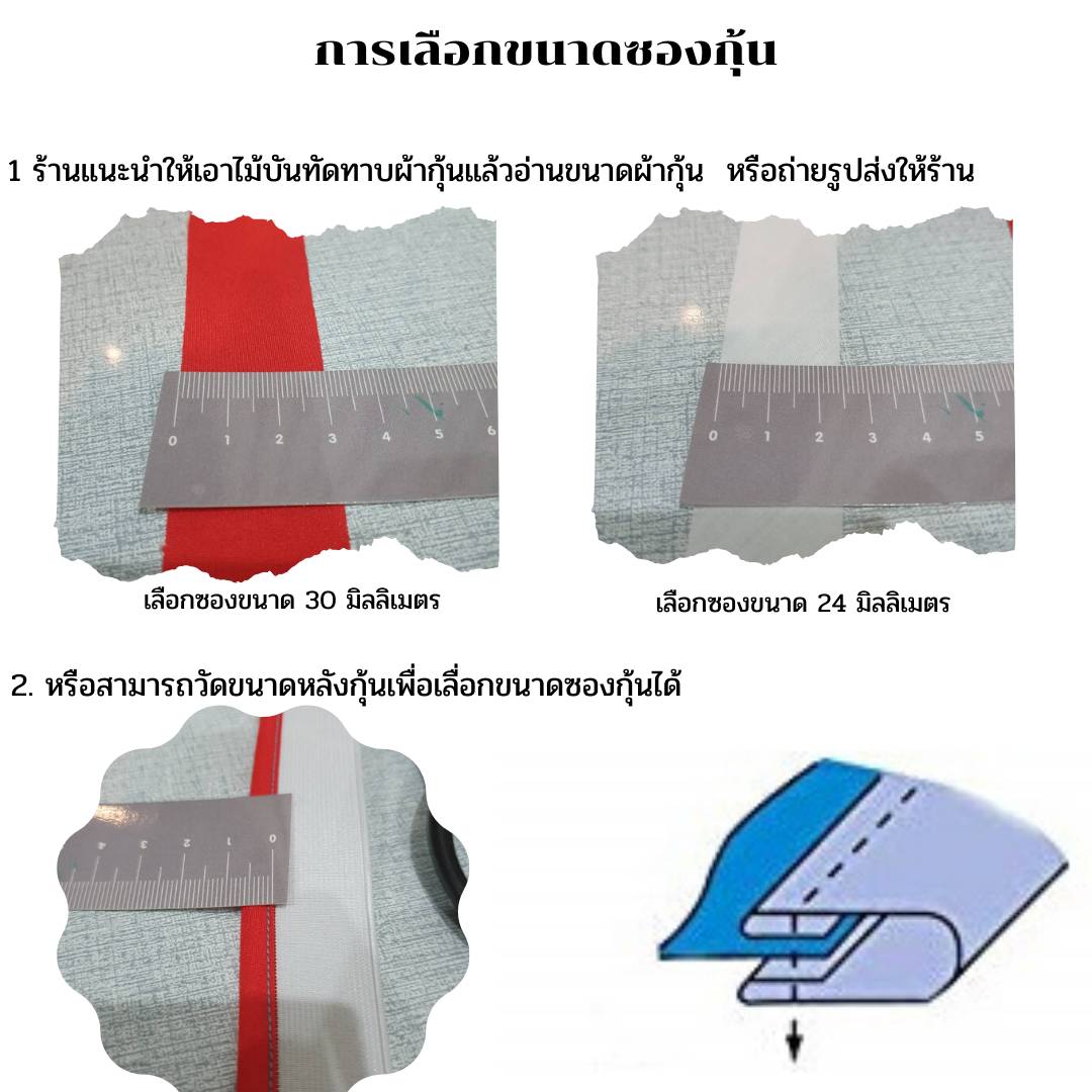2 หาก ลูกค้าแจ้งความต้องการขนาด ขอบกุ้น ช่างสามารถวัดขนาด ขอบกุ้นเพื่อเลือกขนาดซองกุ๊นที่เหมาะสมได้